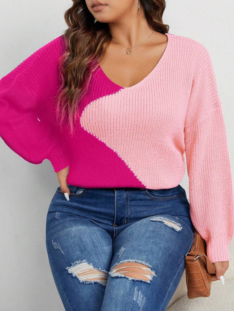 SHEIN Privé Plus Two Tone Drop Shoulder Sweater