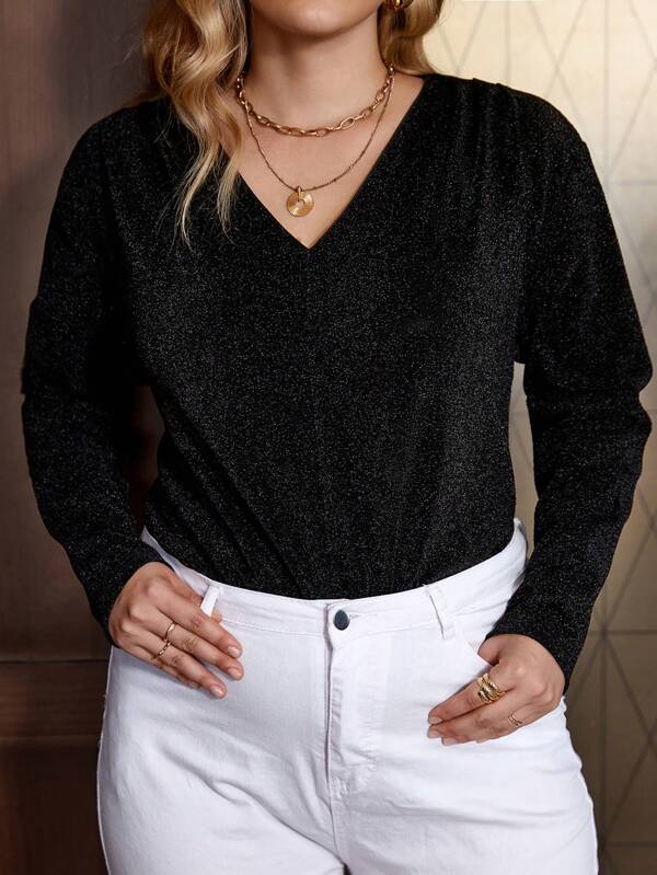 SHEIN Clasi Plus V Neck Glitter Bodysuit