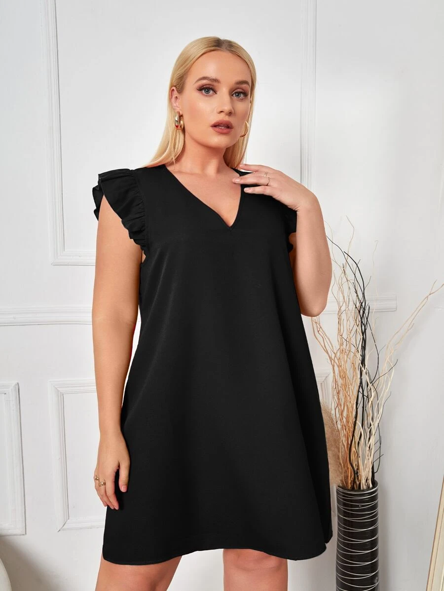 SHEIN Clasi Plus V Neck Ruffle Trim Tunic Dress