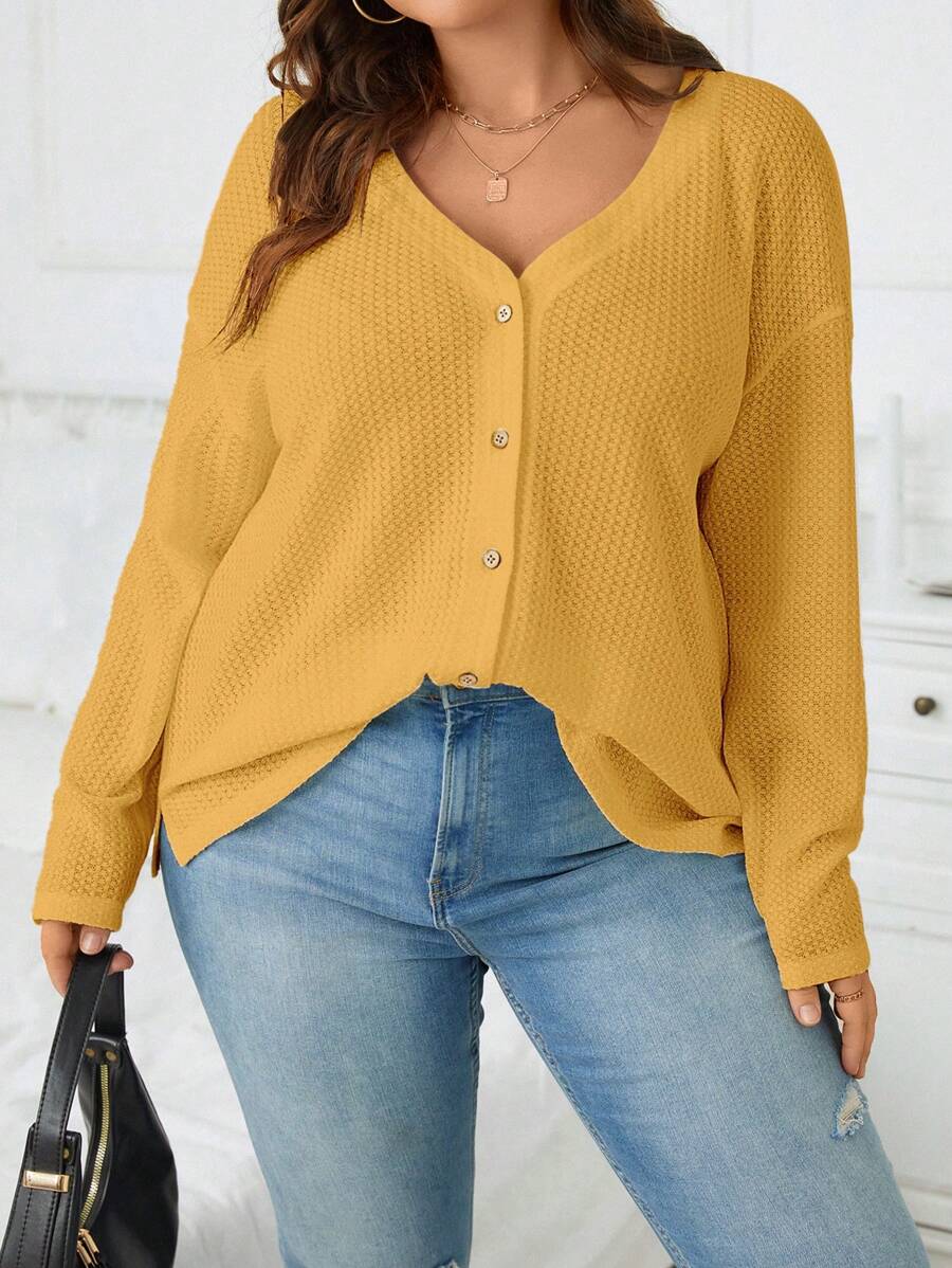 SHEIN EZwear Plus Waffle Knit Drop Shoulder Tee