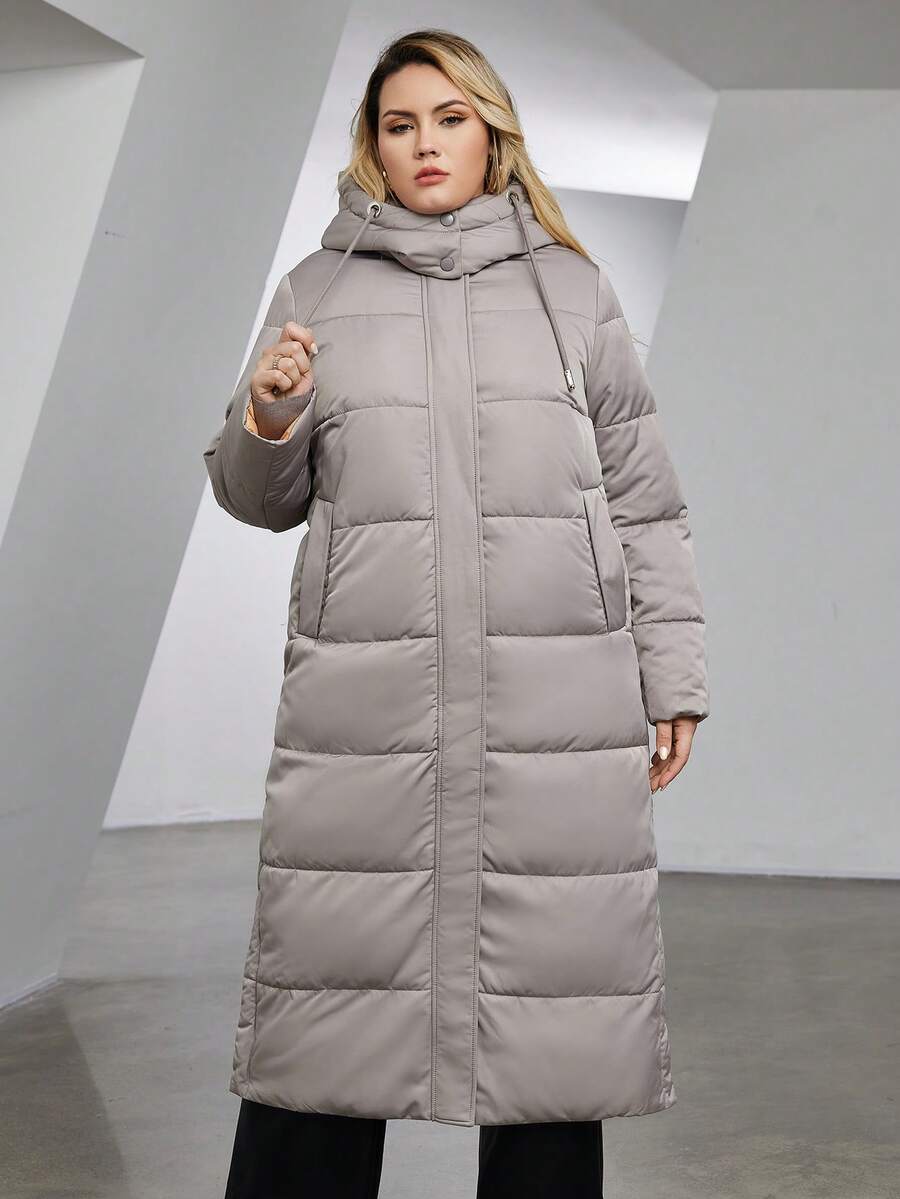 Astrid Plus Zip Up Drawstring Hooded Puffer Coat