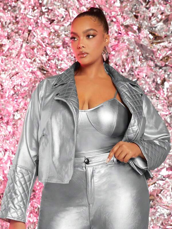 SHEIN SXY Plus Zip Up Patent Moto Jacket