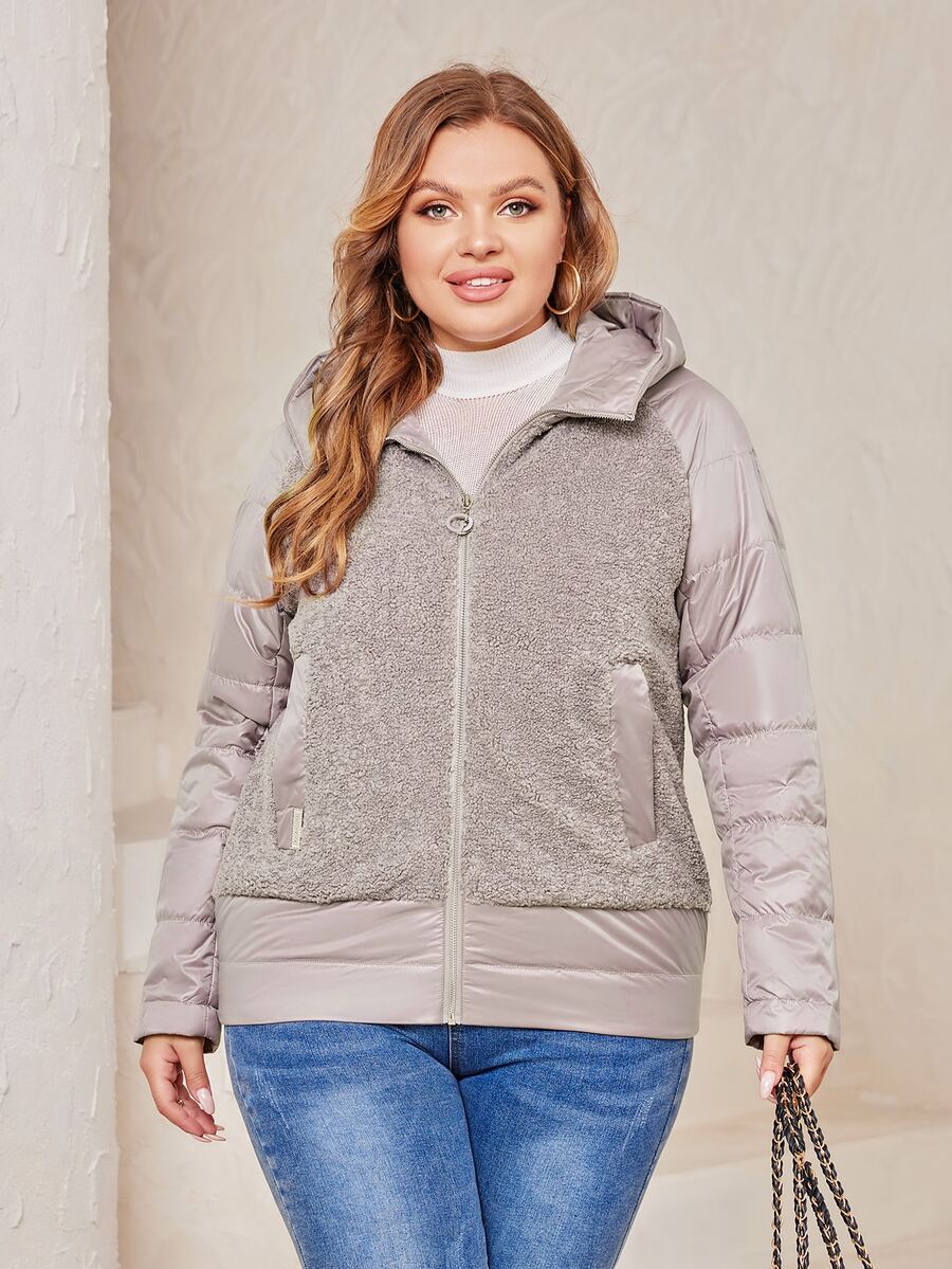 Plus Zip Up Raglan Sleeve Hooded Puffer Coat