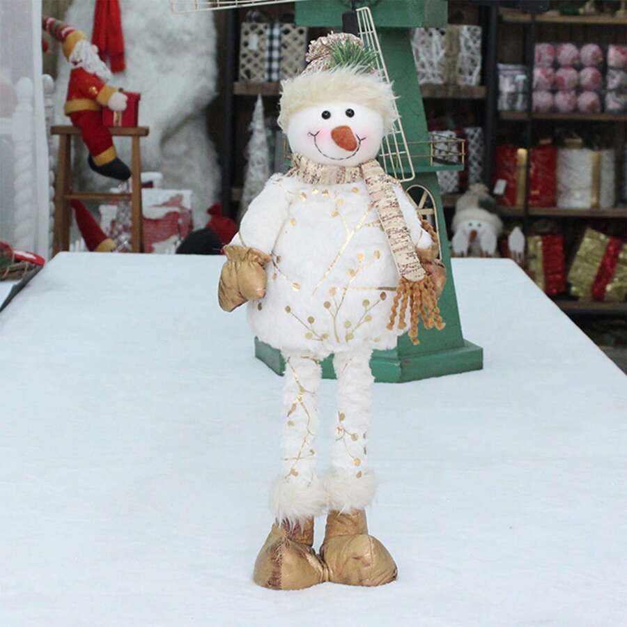 Plush Cartoon Snowman Doll Toy With Stretchable Legs, Home Decor Ornament