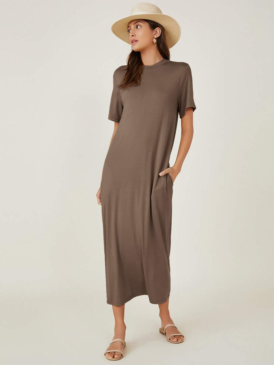 SHEIN BASICS Pocket Side Solid Tee Dress