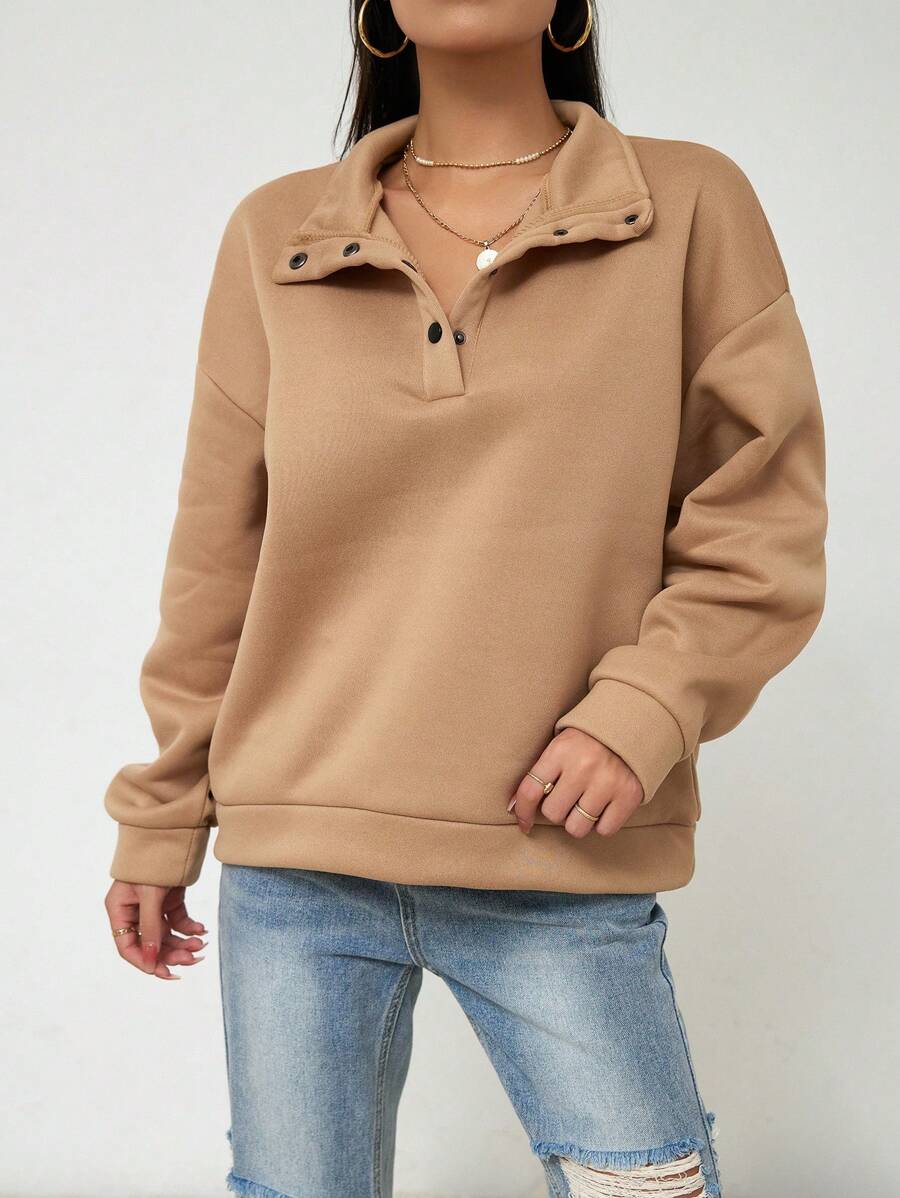 Polo Neck Drop Shoulder Sweatshirt
