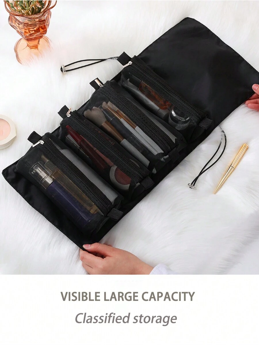 Portable & Detachable 4In 1 Travel Makeup Bag, 1pc Multifunctional Cosmetic Organizer Handbag Bath Shower Wallet Pouch Portable Cosmetics Brush Storage Clutch with Zipper Closure for Lipstick, Brush, Skincare, Mobile Phone, Coin, Small Items, for Home, Travel, Vacation and School Use