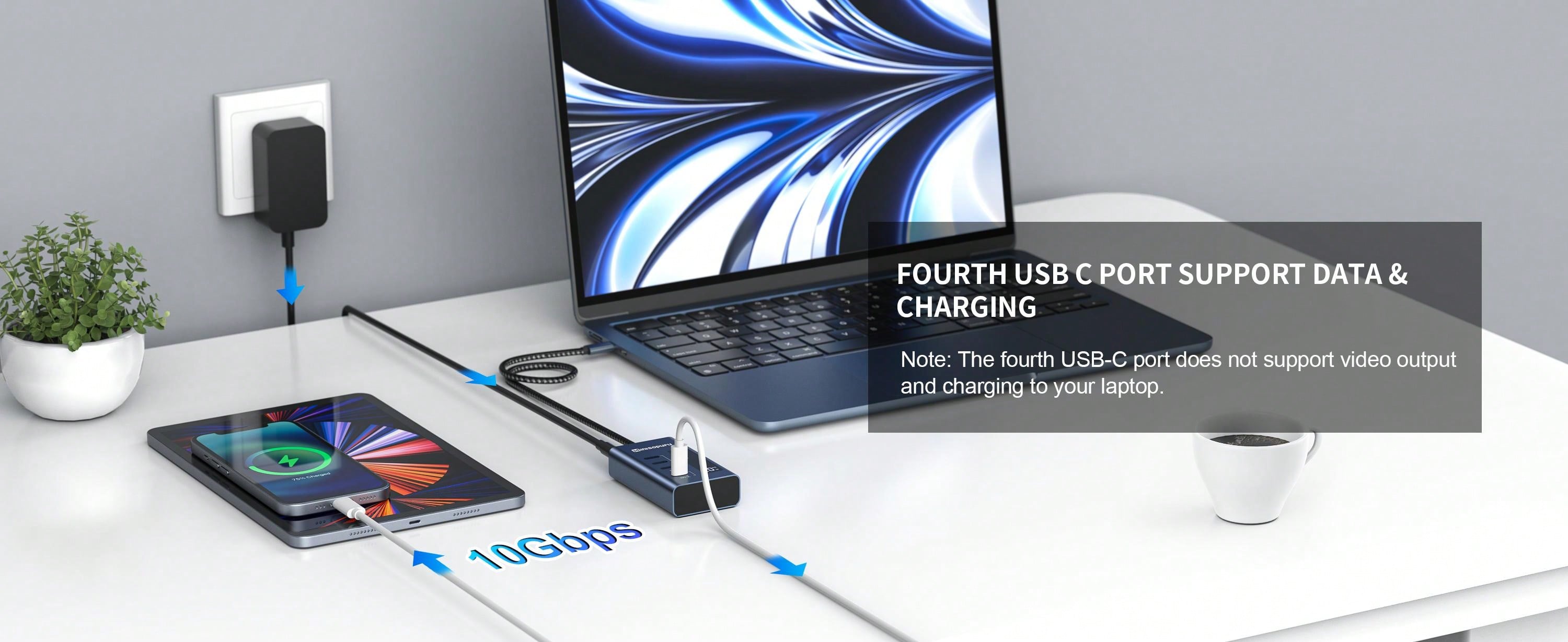 Powered 4-in-1 Usb C Hub Adapter Supporting 10gbps Data Transfer And Fast Charging (not Support Video) For Usb-c To Usb-c Devices, Compatible With Macbook Pro/air, Imac, Ipad, Chromebook, And More Usb C Devices