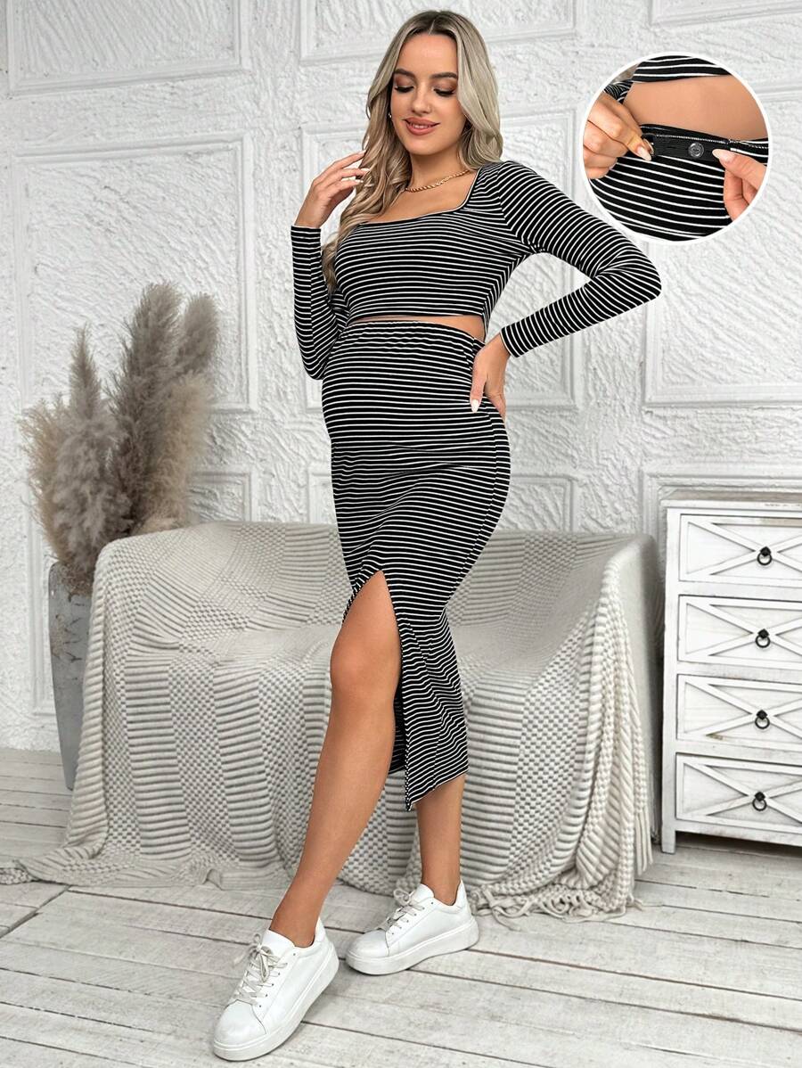 SHEIN Pregnant Women's Striped Simple Two Piece Set