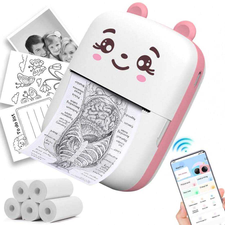 Printer,Portable Printer Sticker Maker,Mini Study Thermal Printer For Phone Photos Pattern Kids Gift,Suitable For Smartphone Portable Thermal Printer,Used For Notes,Diary DIY,Children's Gifts,Learning Graphics,Anatomy Maps,Photos,Student Sticker Printer Christmas Birthday And New Year Gifts