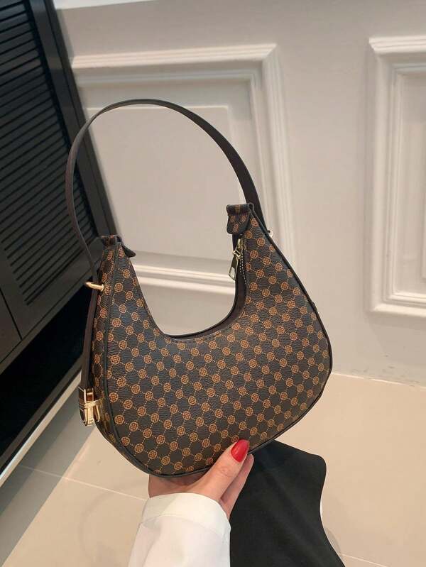 Pu Leather Fashionable And Atmospheric Crescent-Shaped Shoulder Bag With Brand Logo