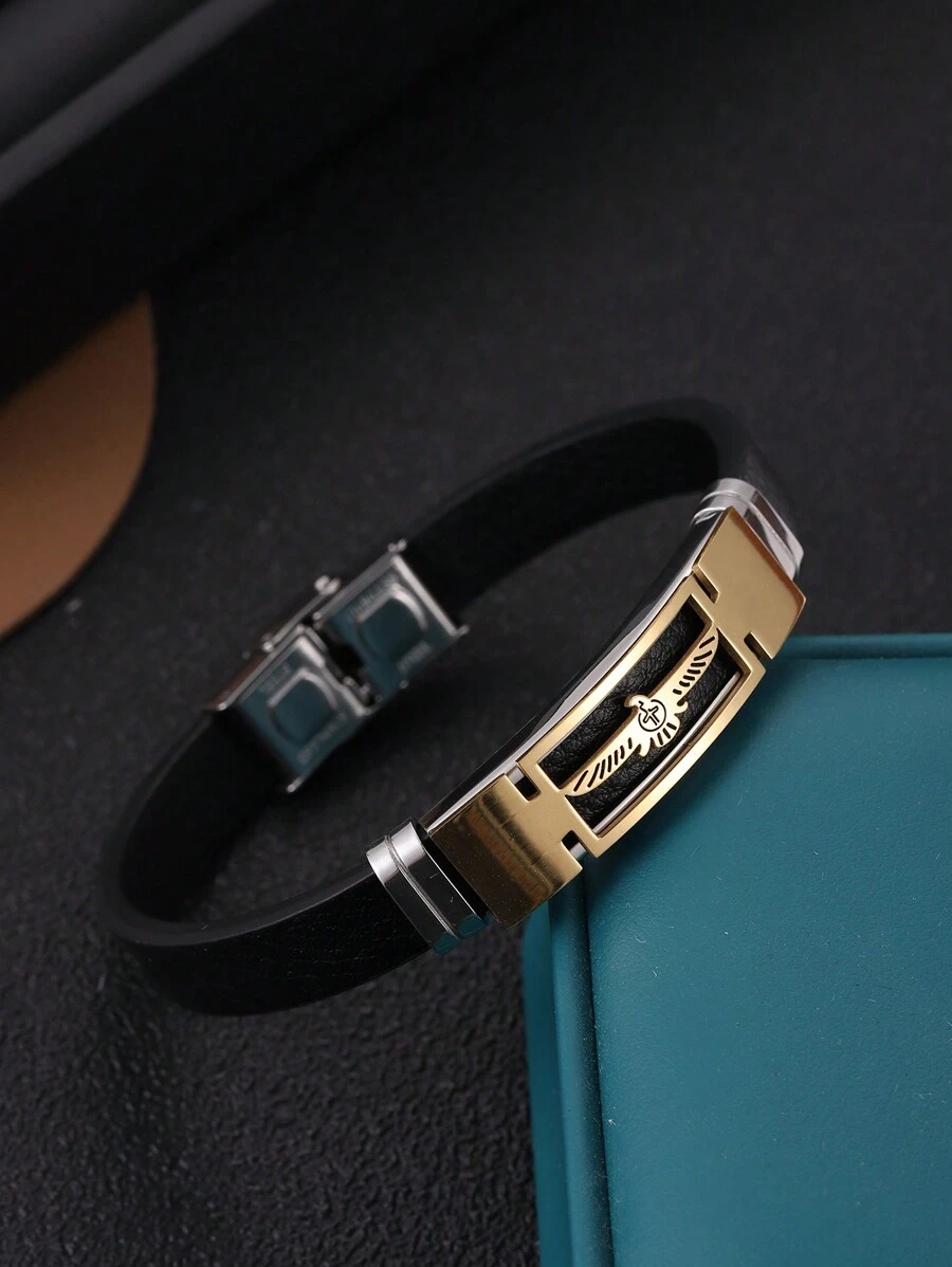 Punk Trend Street Style Eagle Black Background Pattern Titanium Steel Leather Bracelet