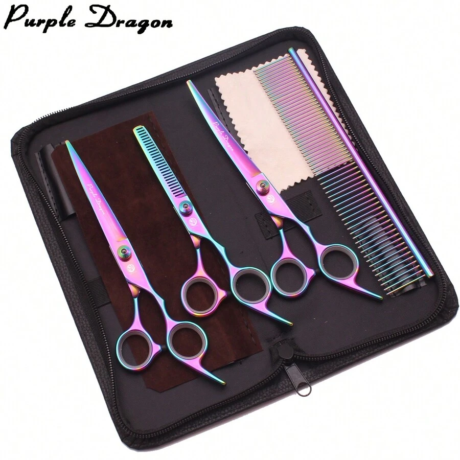 Purple Dragon Dog Grooming Scissors Rainbow Japan Stainless Hairdressing Scissors Thinning Scissors Curved Scissors Z3001