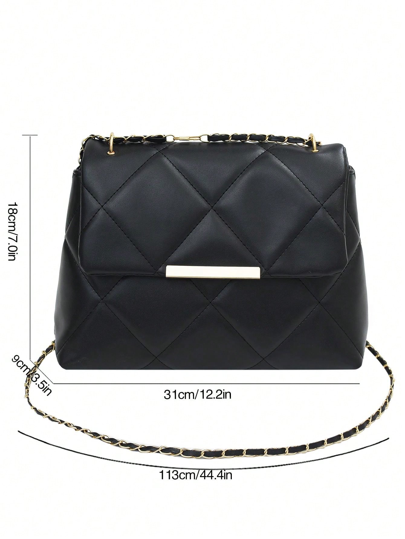 Quilted Pattern Flap Square Bag Metal Decor Chain