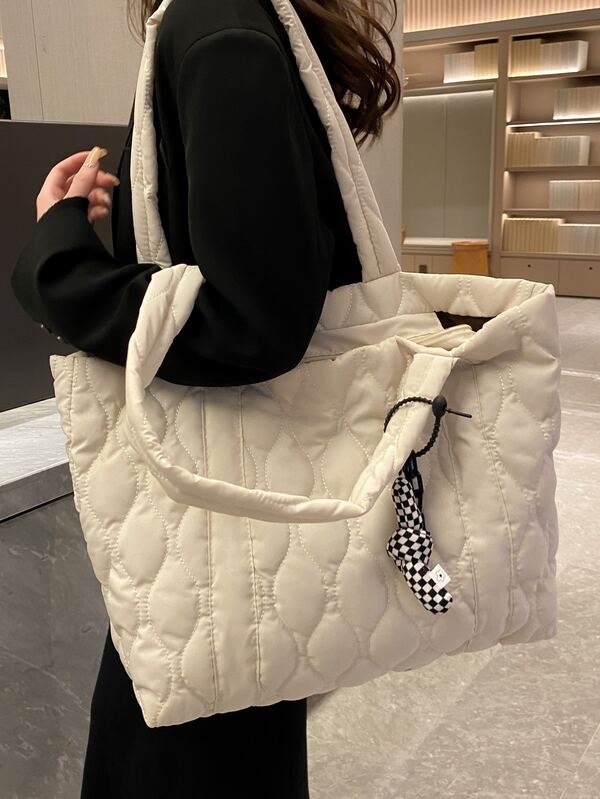 Quilted Shoulder Tote Bag With Bag Charm White-collar Workers,Teacher,For Teen Girls Women College Students Teachers' Day,Outdoors, Travel, Outings,Work ,Business,Commute,Middle school, High school,Elementary school,College,Perfect for School