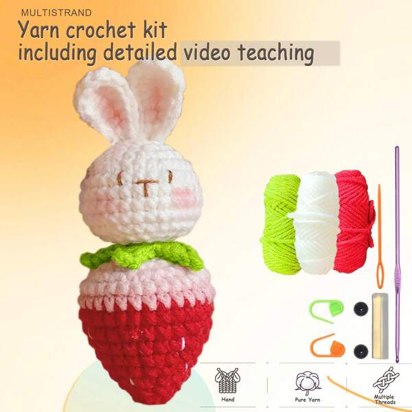 Rabbits And Strawberry Crochet Kit For Beginners, Amigurumi Stuffed Animals - Gift Animal Crochet Starter Kit All-In-One Complete Crochet Kit Learn To Crochet Sets With Instructions And Step By Step Video Tutorials For Adults Cute Animal Doll DIY Crafts For Home Decor Desktop Decor As A Holiday, Christmas, Easter And Mother'S Day Birthday Gift