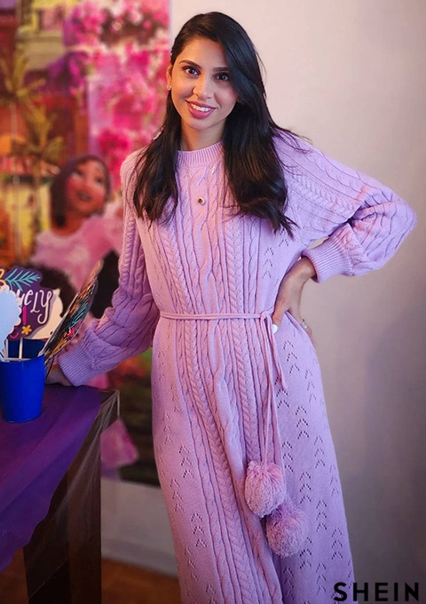 SHEIN Mulvari Raglan Sleeve Cable Knit Belted Sweater Dress