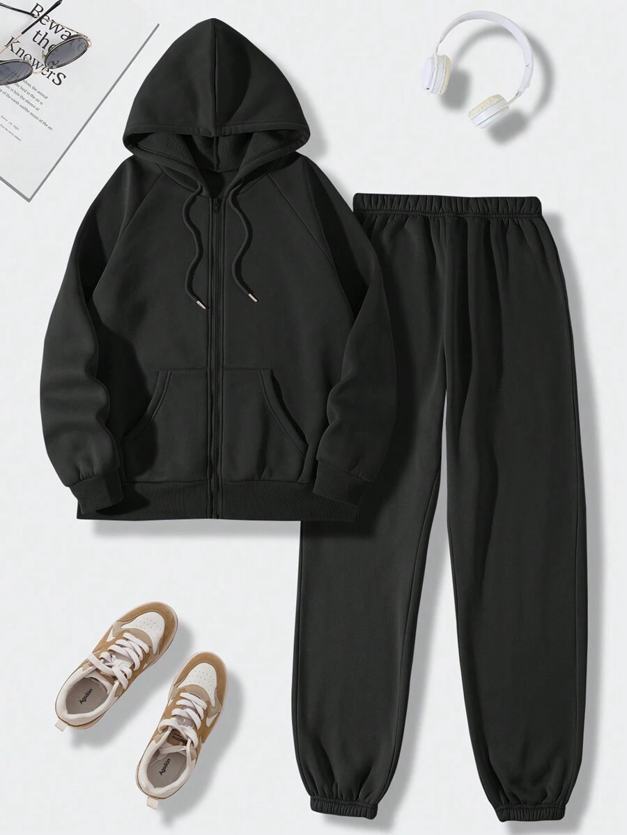 Raglan Sleeve Drawstring Thermal Lined Hoodie & Sweatpants