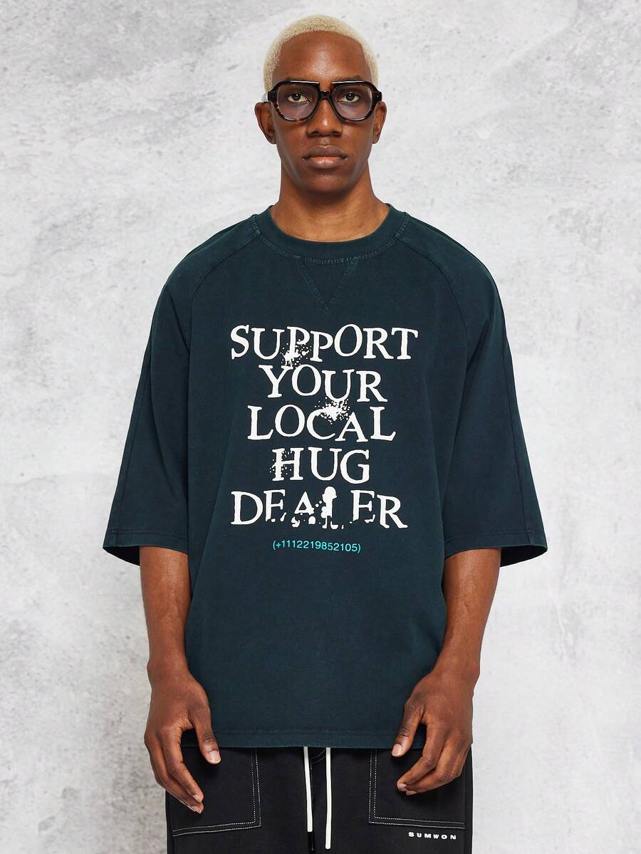 SUMWON Raglan Sleeve Washed Tee With Hug Dealer Print