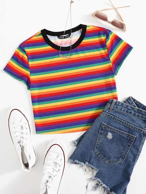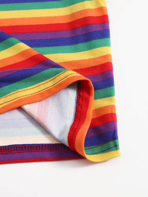 SHEIN EZwear Rainbow Striped Print Tee