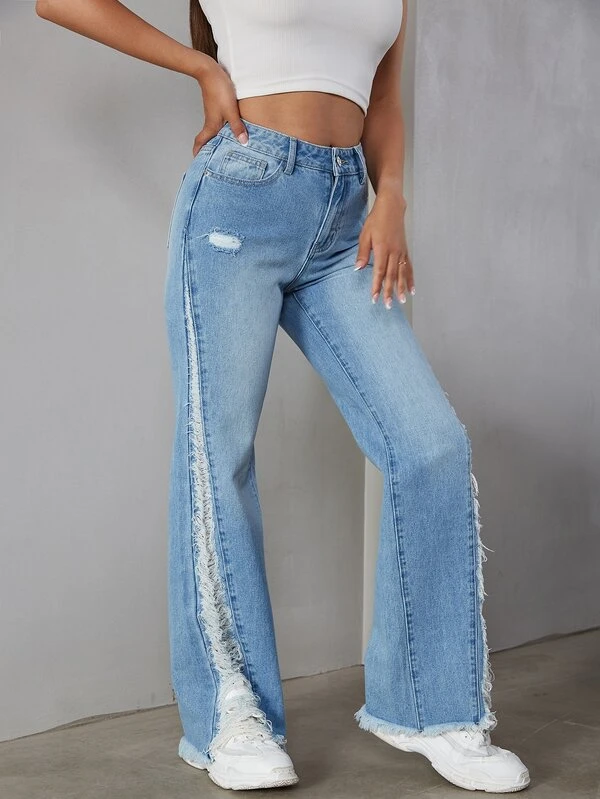 Eilly Bazar Raw Trim Flare Leg Jeans