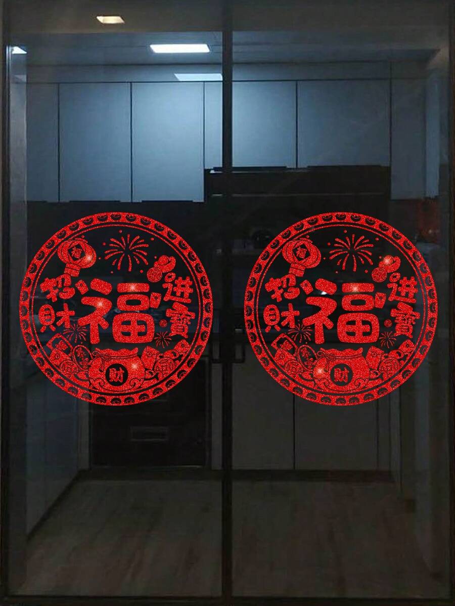 Red Chinese New Year Fu, Congratulations & Wealth Glass Sticker For Door & Window Decoration