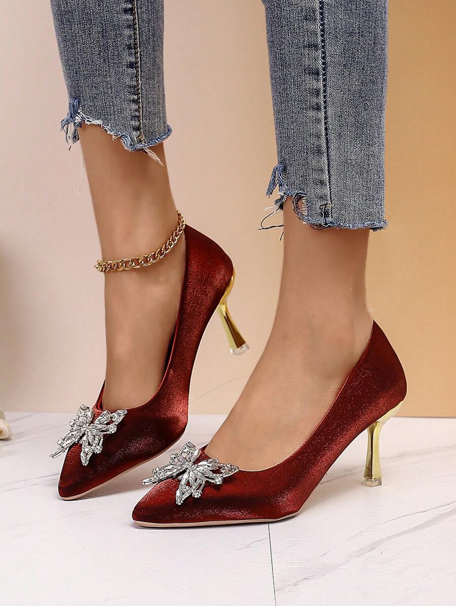Red Wedding Shoes Women High Heels 2023 Autumn & Winter New Pointed Court Two Worn Low Heel 5cm Shoes