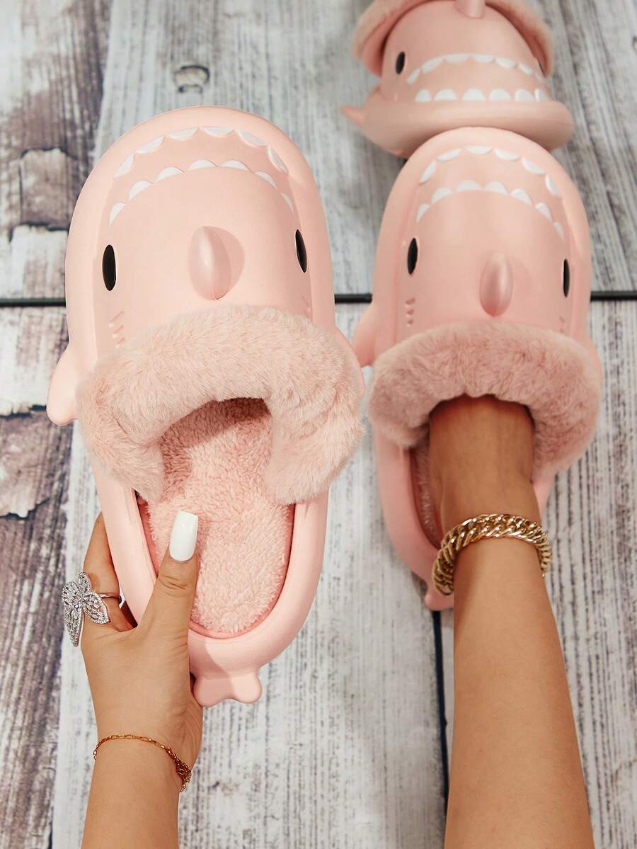 Removable Shark Slippers For Men And Women, Soft Bottom, Anti-slip, Warm And Plus-velvet, Suitable For Autumn And Winter