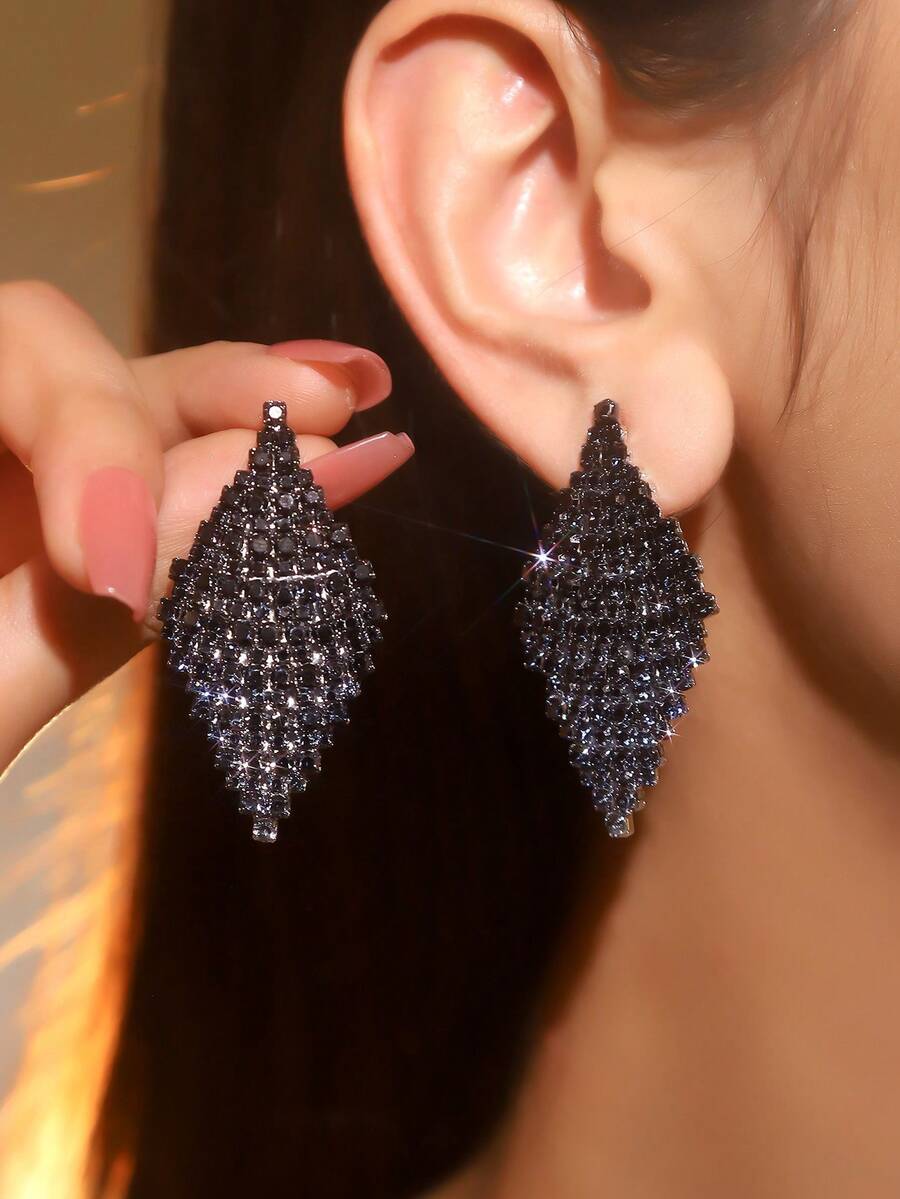 Retro Shining Club Bar Rhombus Crystal Rhinestone Earrings Stud Wedding Party Graduation Jewelry