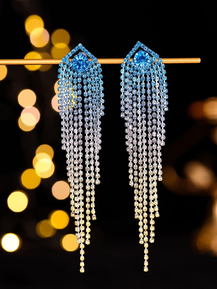 Retro Shining Club Bar Tassel Crystal Rhinestone Earrings Stud Wedding Party Graduation Jewelry