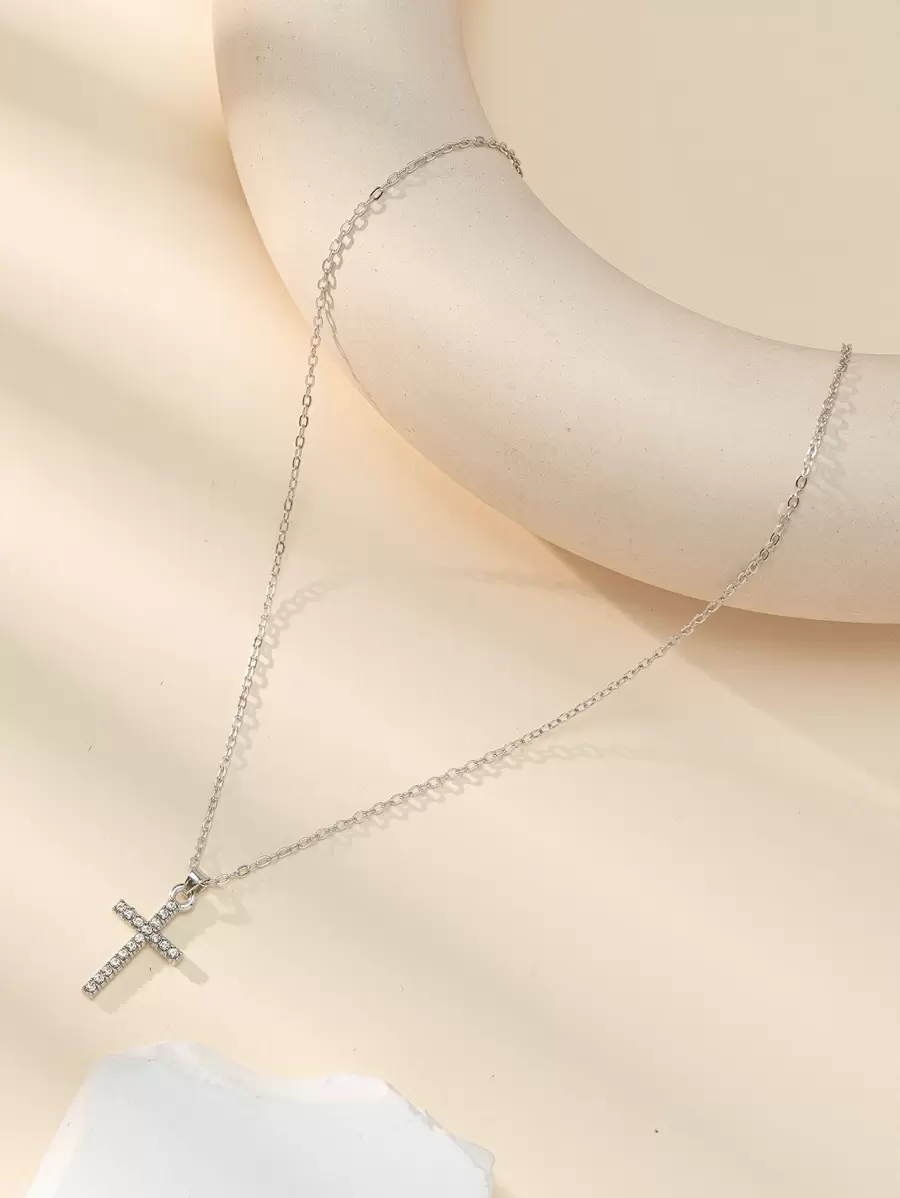 Rhinestone Cross Charm Necklace