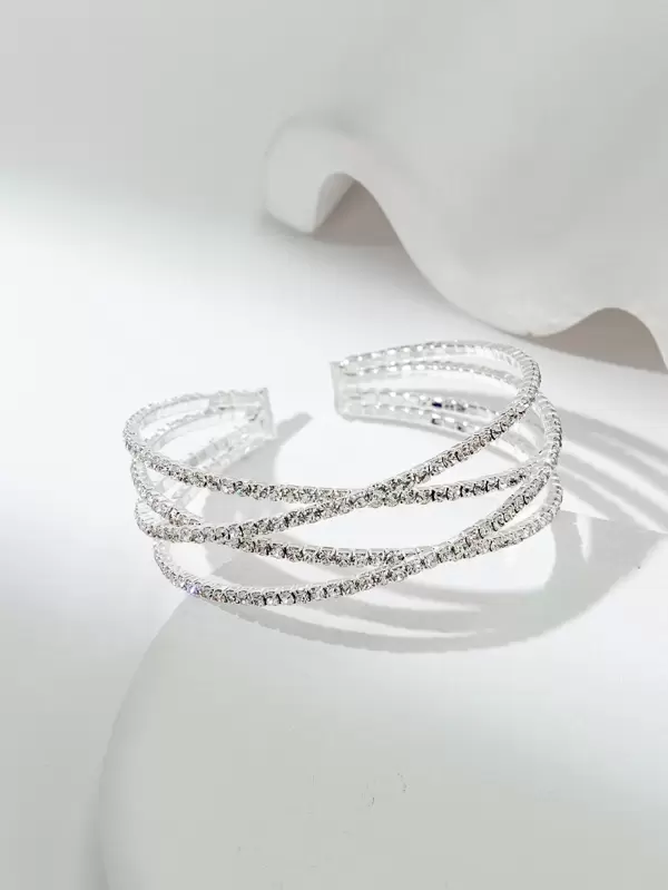 Rhinestone Decor Layered Cuff Bangle