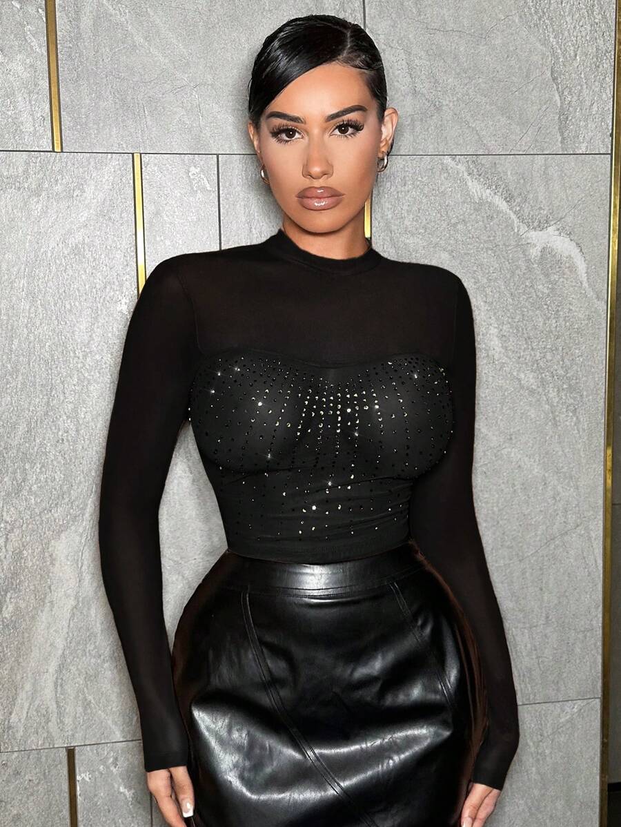 SHEIN SXY Rhinestone Detail Mesh Bustier Crop Top Party Outfit Sexy Outfit Spring Women Clothes Bachelorette Party Date Night Dress