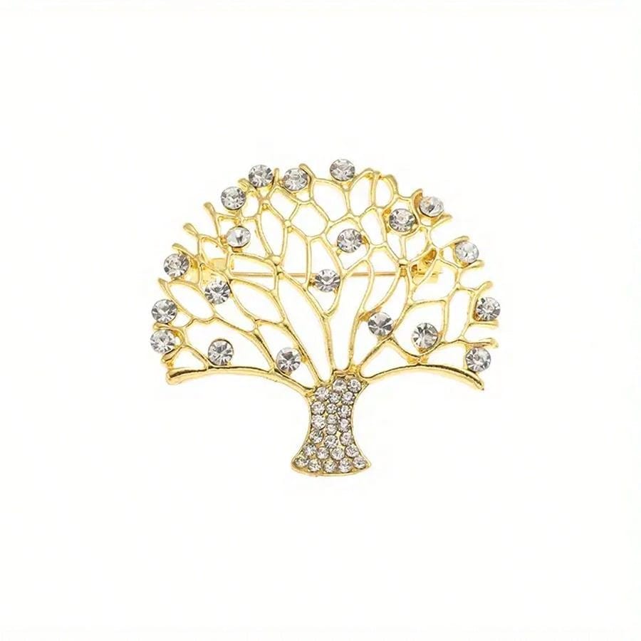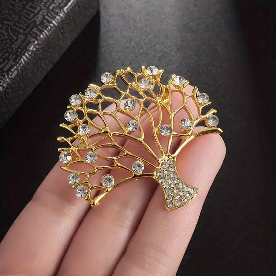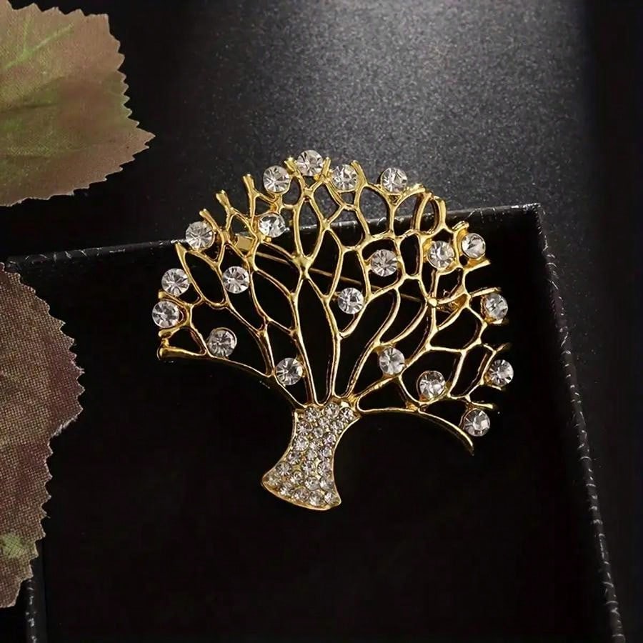 Rhinestone Embellished Money Tree(Brass) Pin Brooch, Exaggerated Atmosphere, Personalized Fashion Accessories
