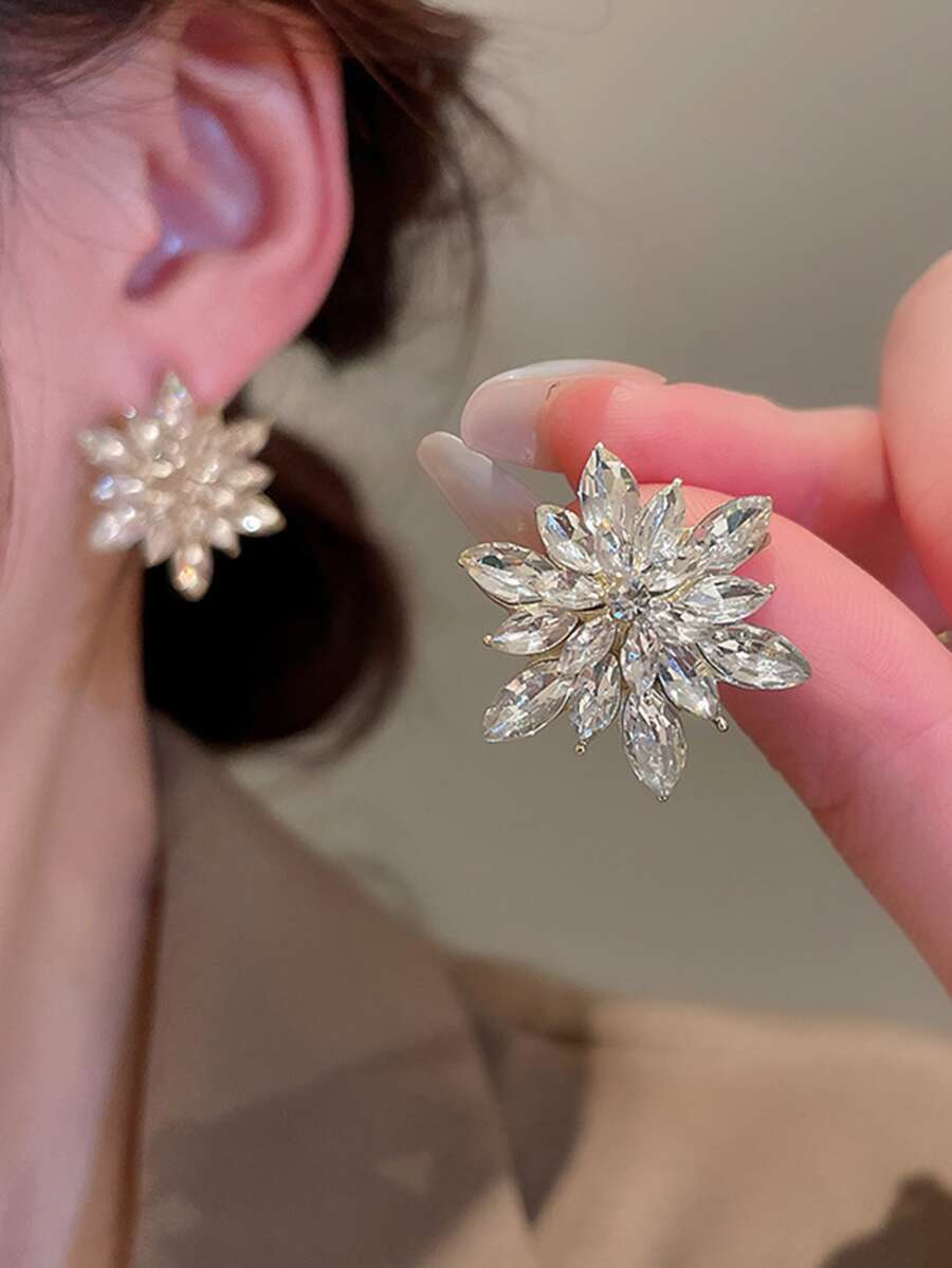 Rhinestone Flower Decor Stud Earrings