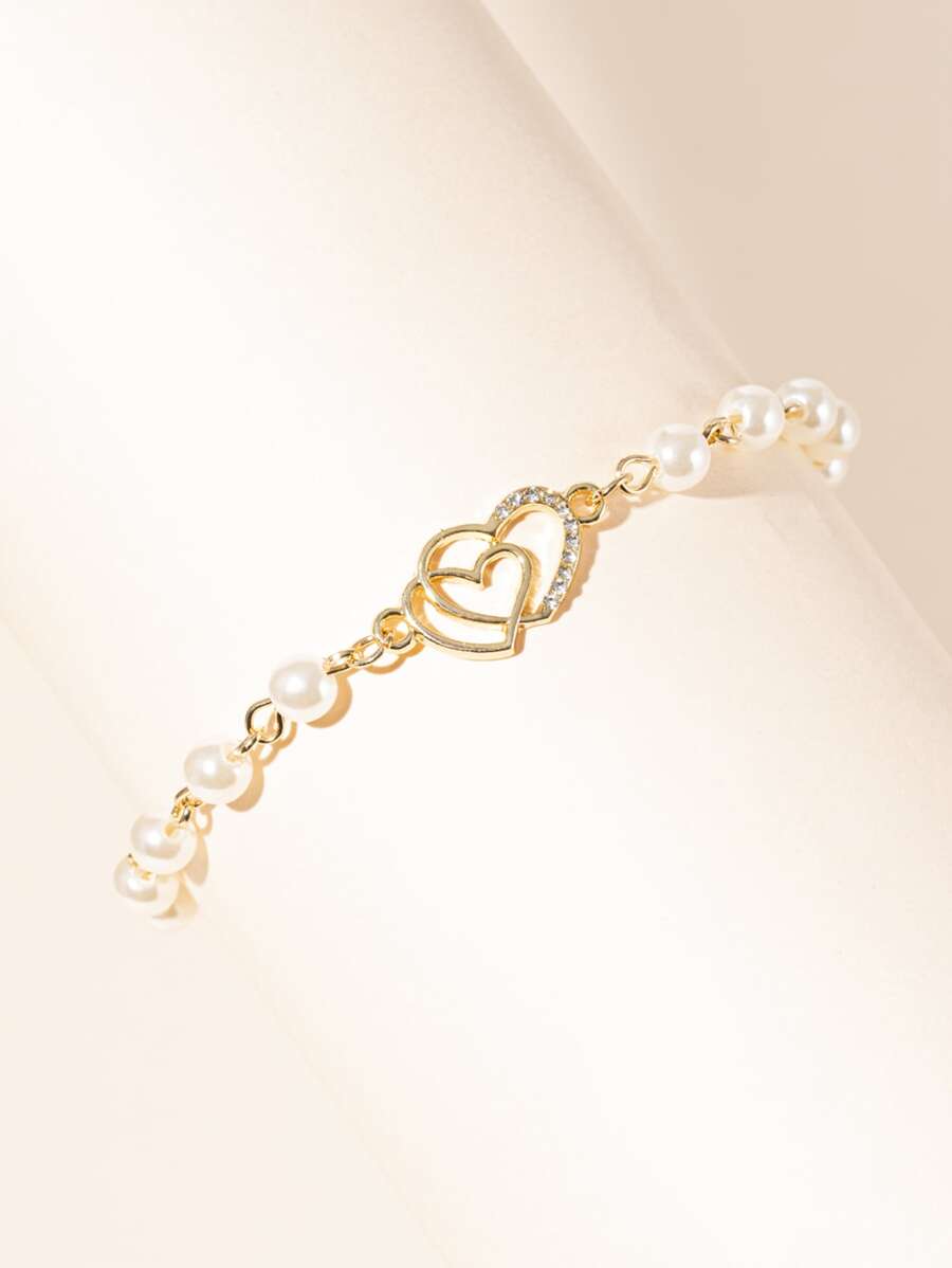 Rhinestone Heart & Faux Pearl Decor Bracelet