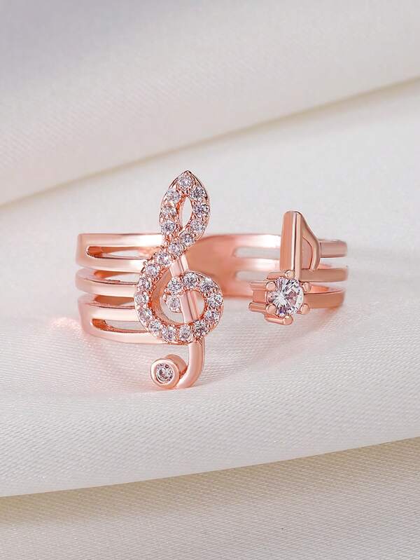 Rhinestone Music Note Decor Cuff Ring