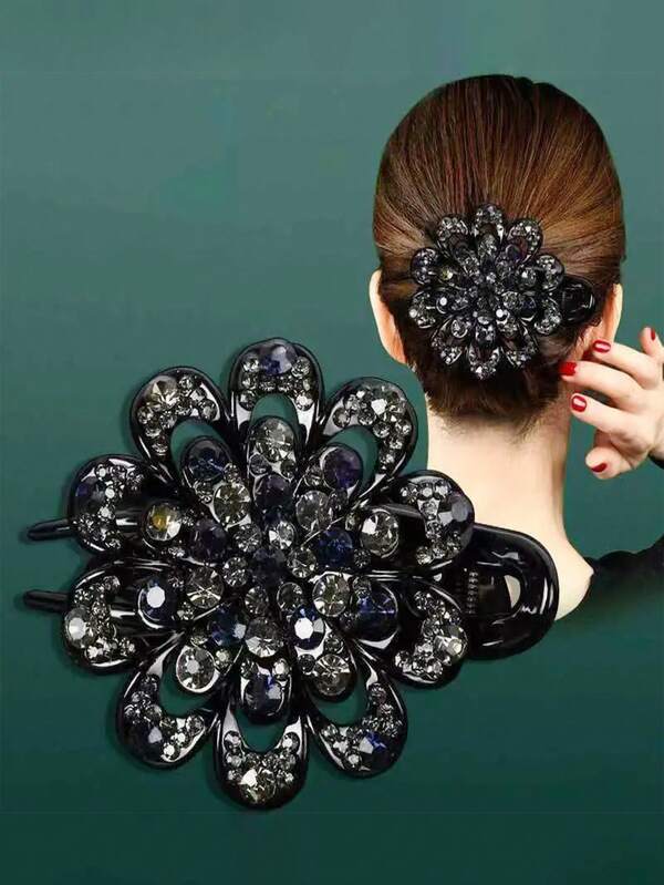 Rhinestones Flower Hair Clip Ponytail Hairclip Duckbill Hairpin Barrette Crystal Fancy Decorative Hair Accessories For Women
