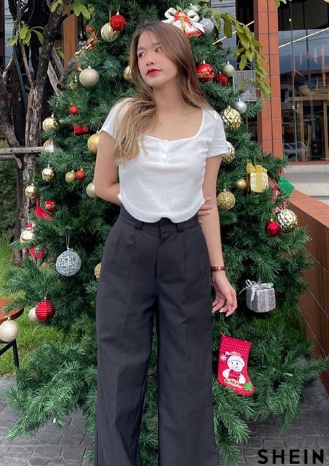 SHEIN EZwear Ribbed Buttoned Curved Crop Top
