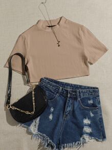 SHEIN Ribbed Mock Neck Crop Top