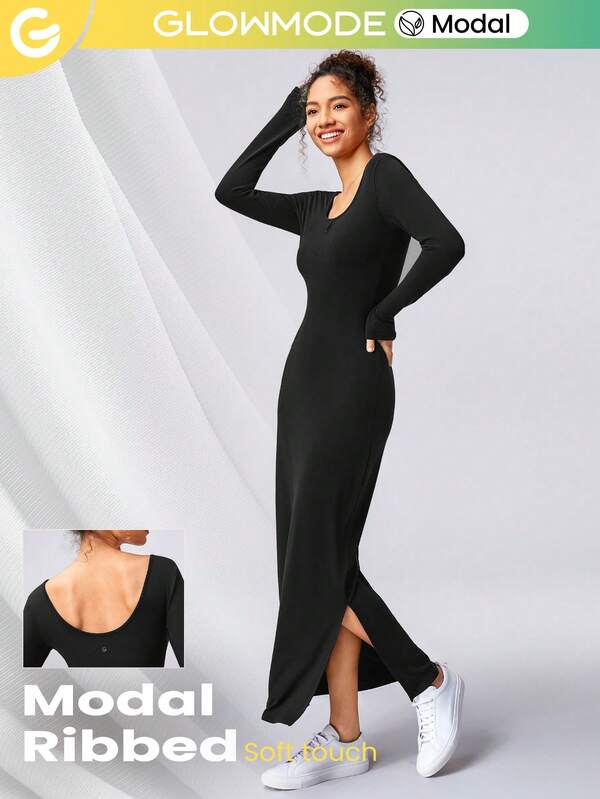 GLOWMODE Ribbed Modal Cut-Out Backless Slit Dress