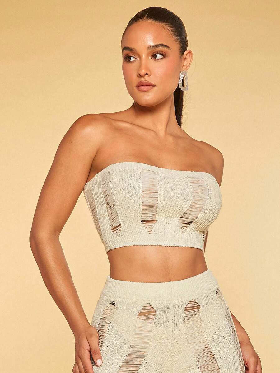 SHEIN BAE Ripped Crop Tube Knit Top