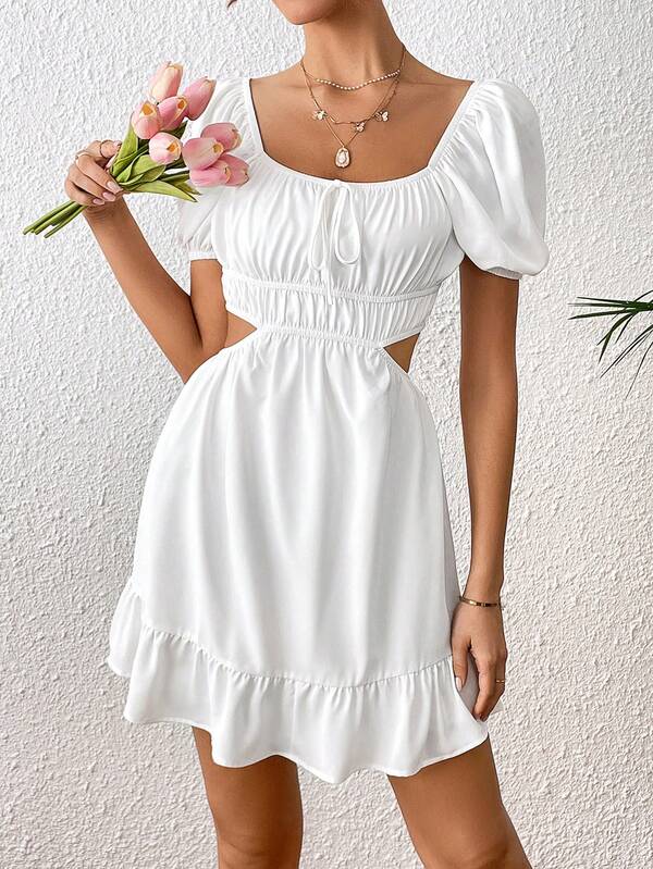 SHEIN VCAY Ruched Bust Cut Out Waist Ruffle Hem Dress