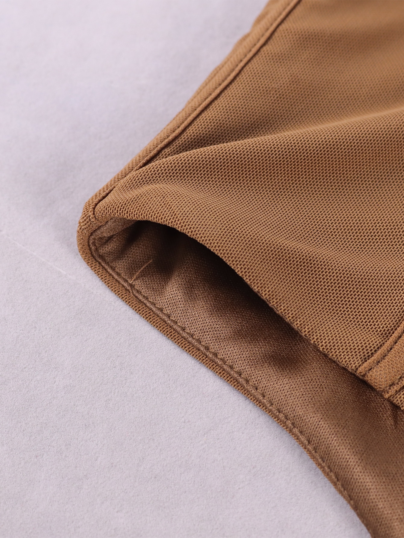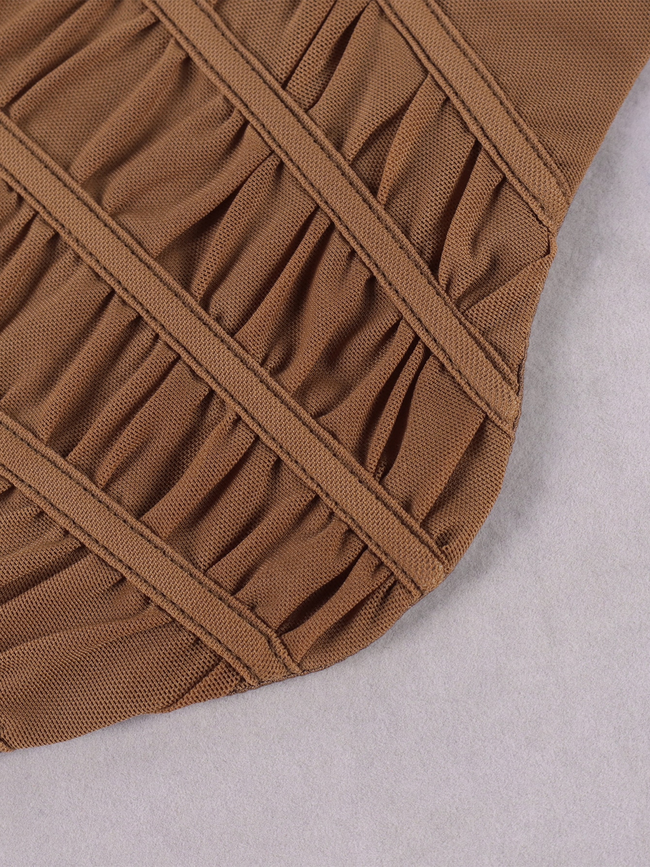 PARTHEA Ruched Bust Zipper Back Bandana Hem Mesh Cami Top
