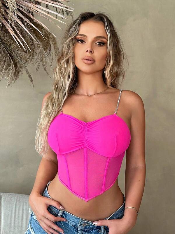 SHEIN SXY Ruched Bustier Bandana Hem Mesh Cami Top
