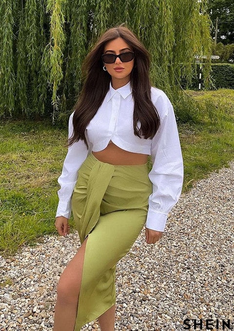 SHEIN SXY Ruched Draped Front Slit Skirt