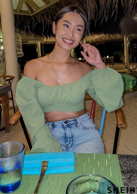 SHEIN Frenchy Ruched Knot Back Crop Blouse