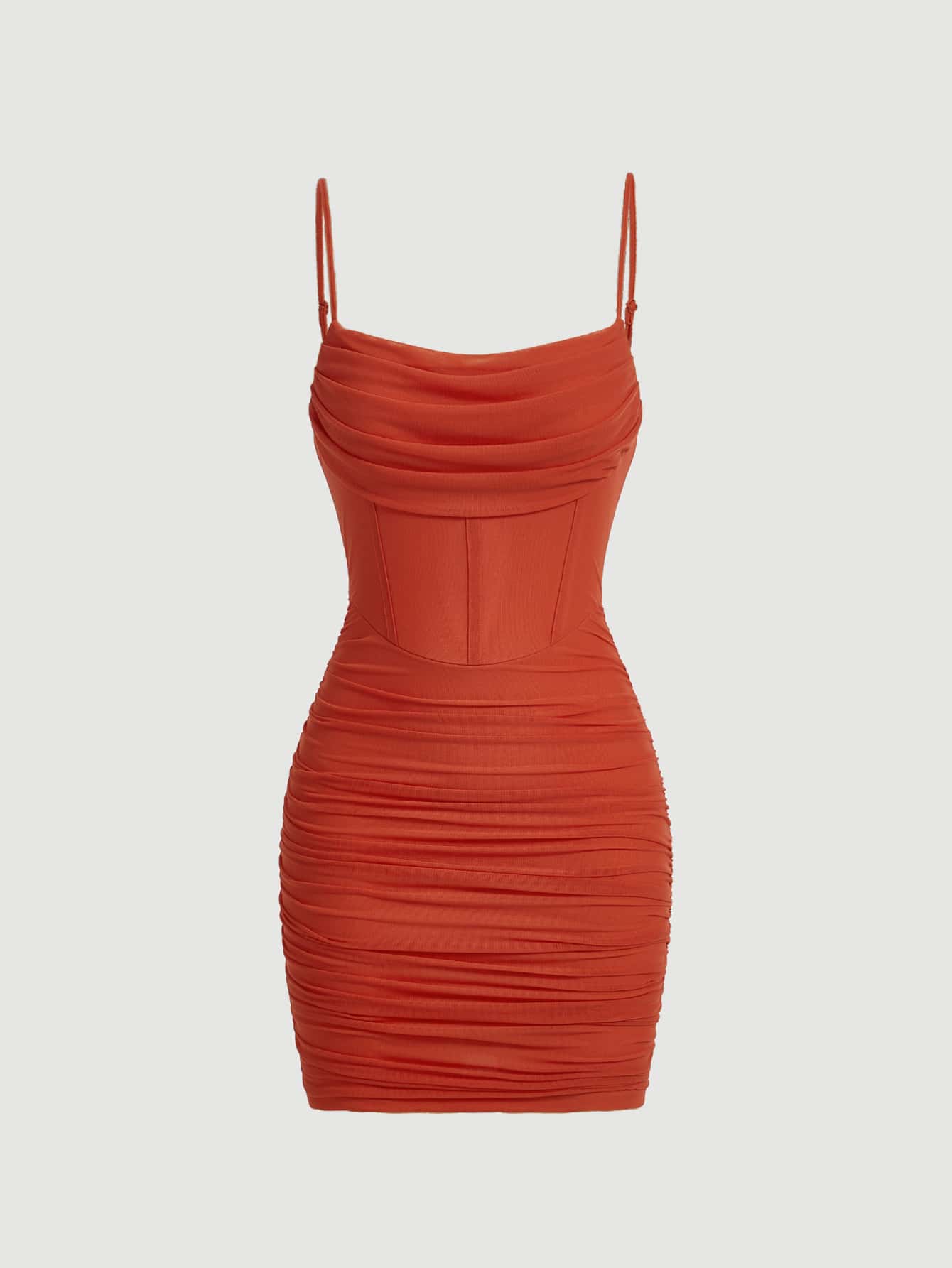 SHEIN MOD Ruched Mesh Cami Bodycon Dress