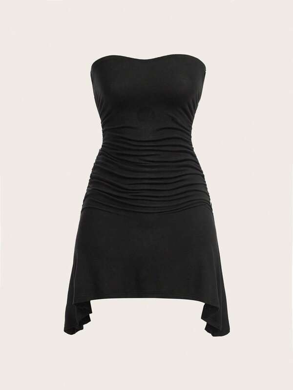 SHEIN EZwear Ruched Side Asymmetrical Hem Tube Dress
