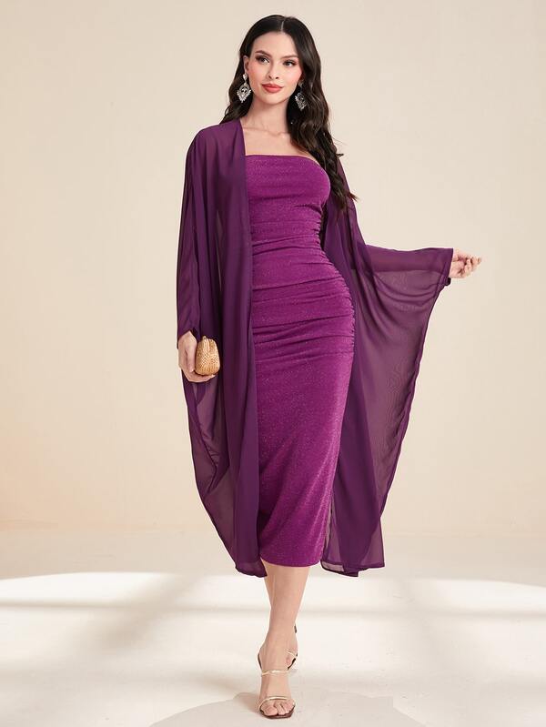 SHEIN Modely Ruched Tube Bodycon Dress & Open Front Coat